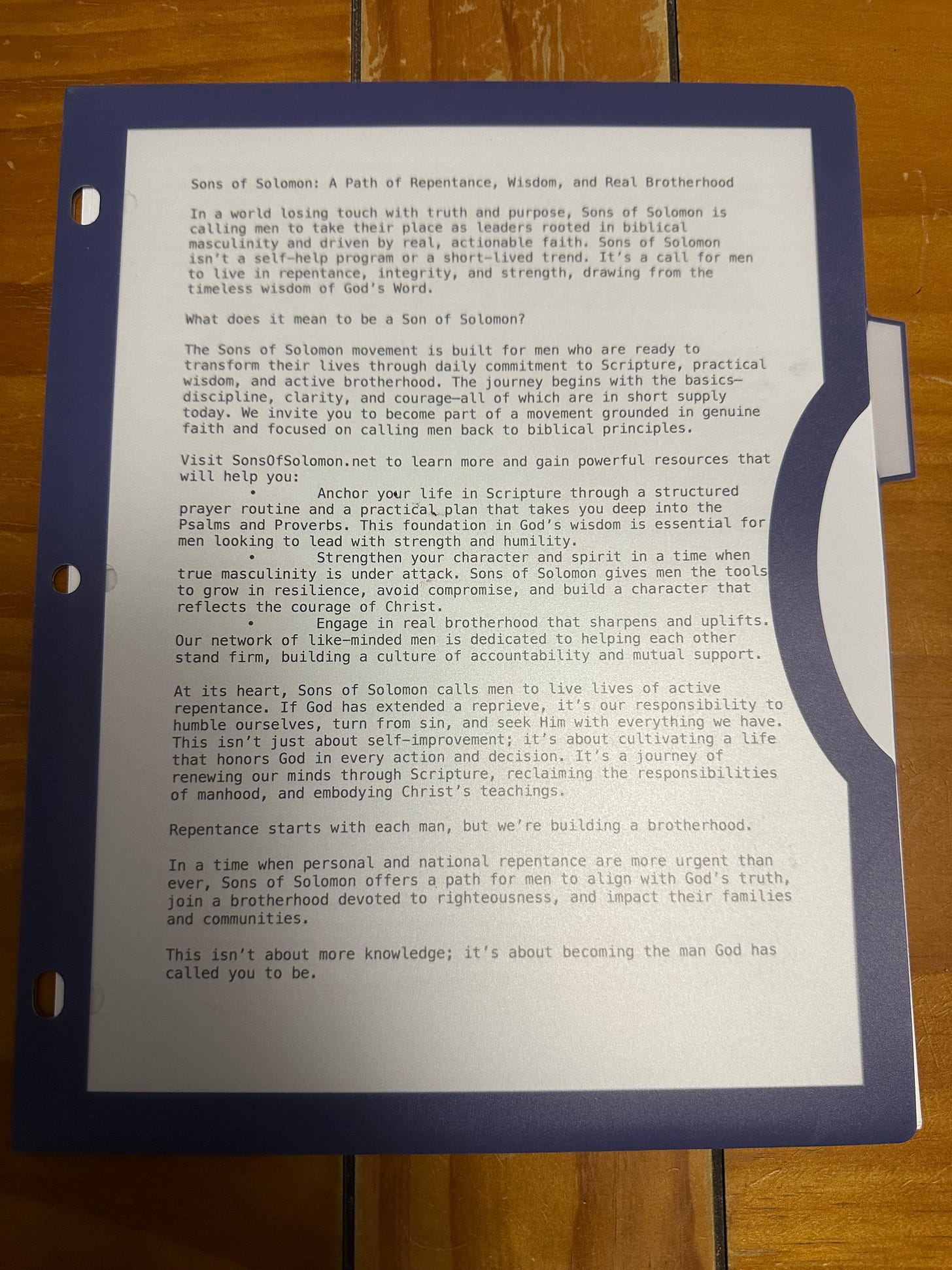 a Gap Year Bible School for Men, a fraternal order and prayer fellowship founded on the principles of Knowledge, Wisdom and Discipline as unearthed inevitably in the Psalms, Proverbs and Red Letters of the Living King, Jesus Christ.
